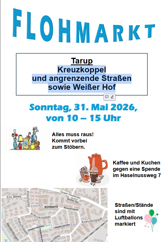 Flohmarkt in allgemeine-Veranstaltungen, Bürgertreffen Datum 31. Mai 2026 Zeit 10:00 - 15:00 Flohmarktplakat 31_05_2026Herunterladen